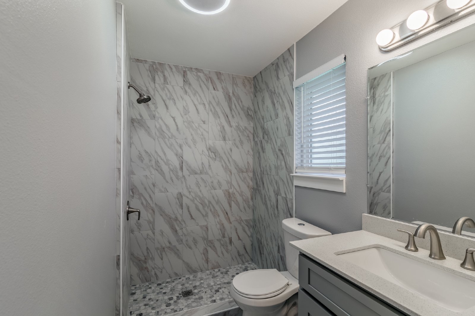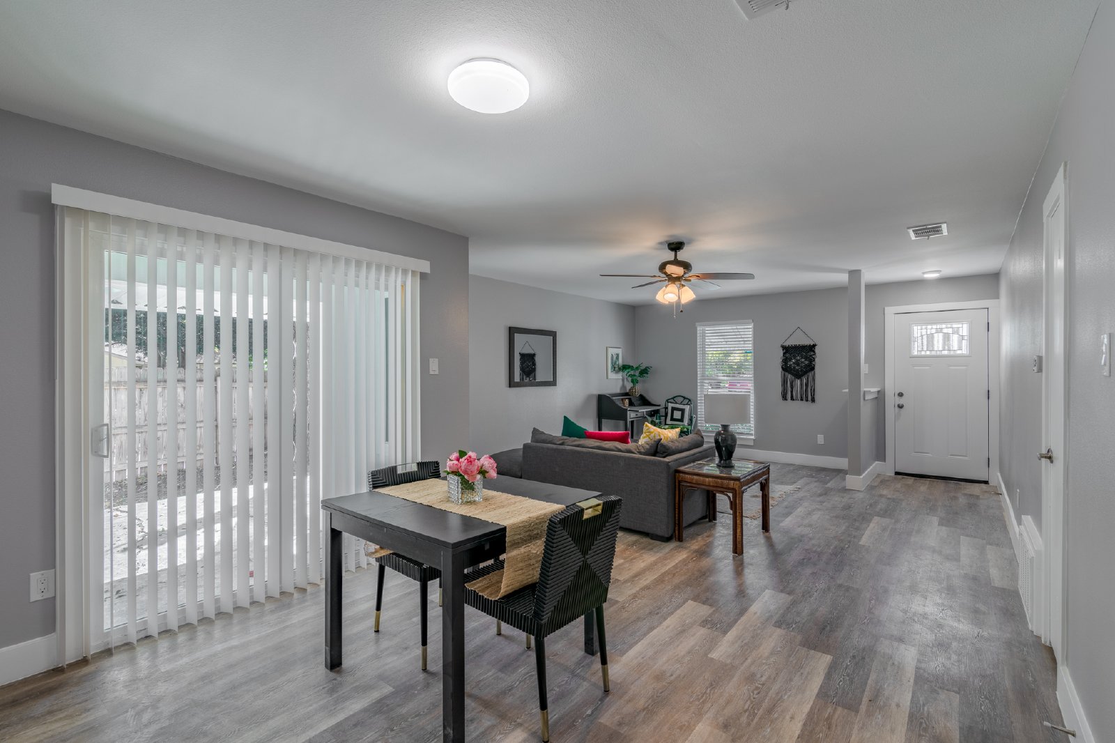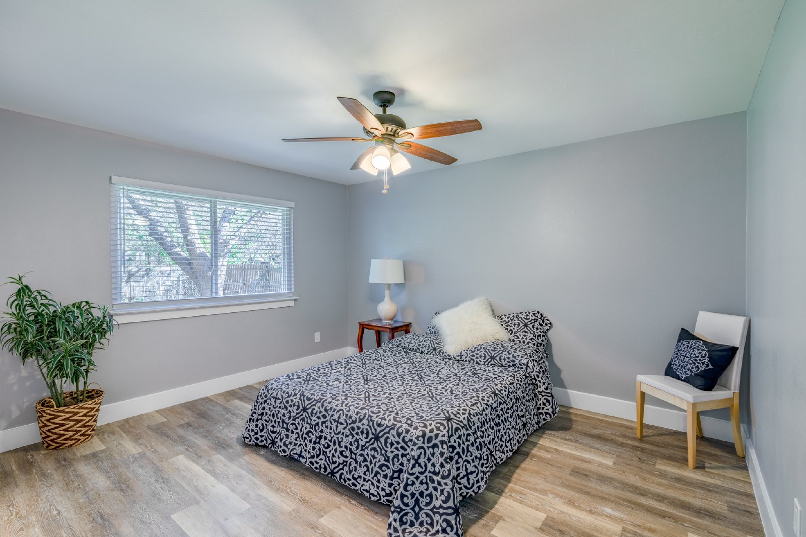 Gorgeous !! All new flooring, quartz counters, cabinets, paint, fixtures, stainless steel appliances, and more! 4 beds/ 2 baths. Huge backyard!